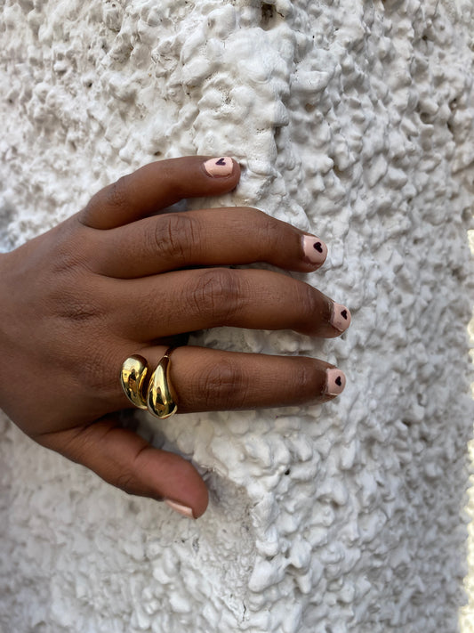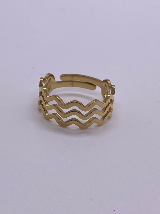 Anillo ajustable con óvalos de acero inoxidable en oro