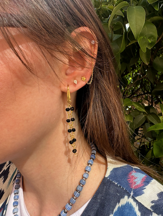 Collar con margaritas y cuentas de cristal en tonos naranja y amarillo