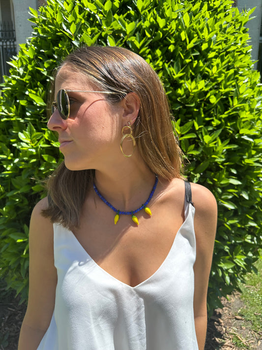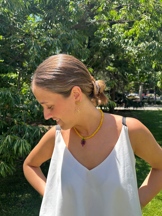 Pendientes piedra fluorita y acero inoxidable oro- VICTORIA